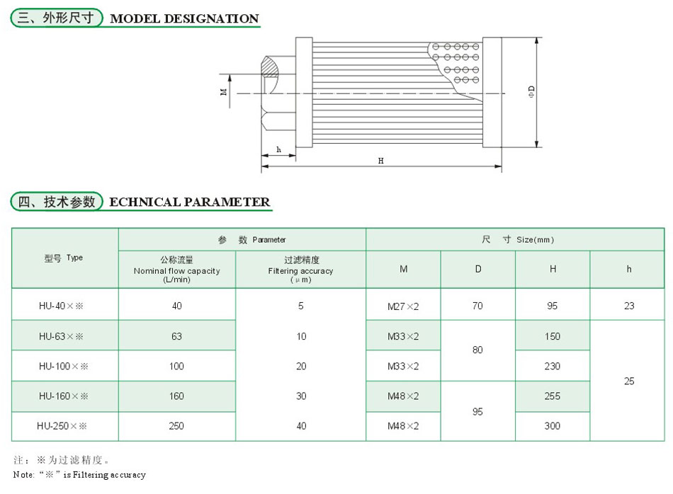 HU回油過(guò)濾器直接與回油管路螺紋連接,伸入油箱的油液中,結(jié)構(gòu)簡(jiǎn)單,使用安裝簡(jiǎn)便。濾芯采用新型化纖濾材,具有通油能力大,過(guò)濾精度高,壓力損失小,納污量大等優(yōu)點(diǎn)。
