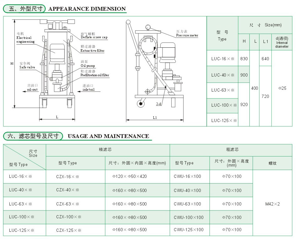 LUC濾油車吸油過(guò)濾器不僅適合于各類液壓油、潤(rùn)滑油的過(guò)濾凈化,而且廣泛用于電站、電廠、變電工區(qū)、石油、化工、冶金、鋼鐵、交通、拖拉機(jī)站、國(guó)防工業(yè)等單位過(guò)濾凈化絕緣油、透平油、潤(rùn)滑油、液壓油、機(jī)械油等液體油液中的雜質(zhì)微粒,能達(dá)到廢油再生的目的。